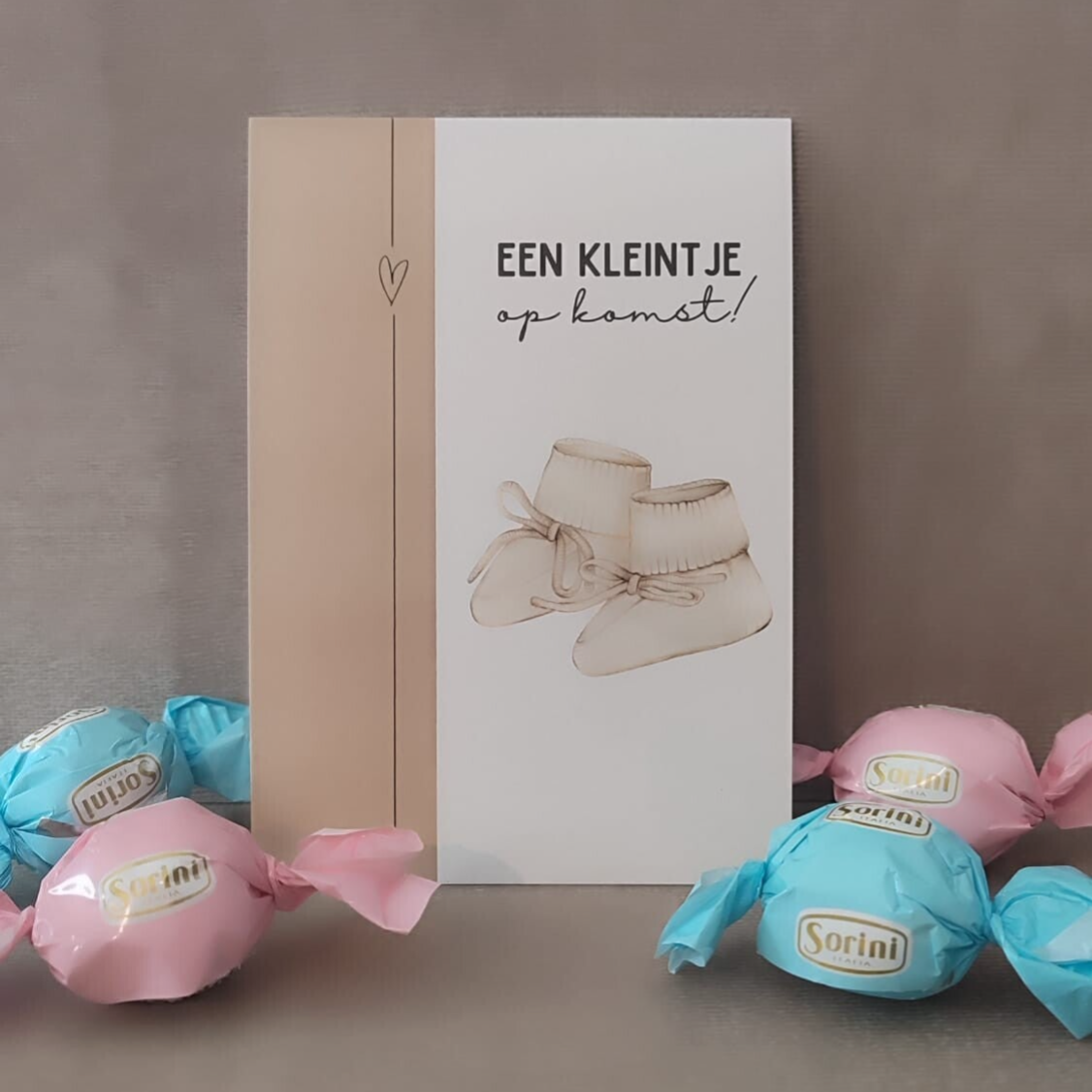 Verras je familie of vrienden met dit leuke cadeautje met een mooie kaart als felicitatie bij de zwangerschap!