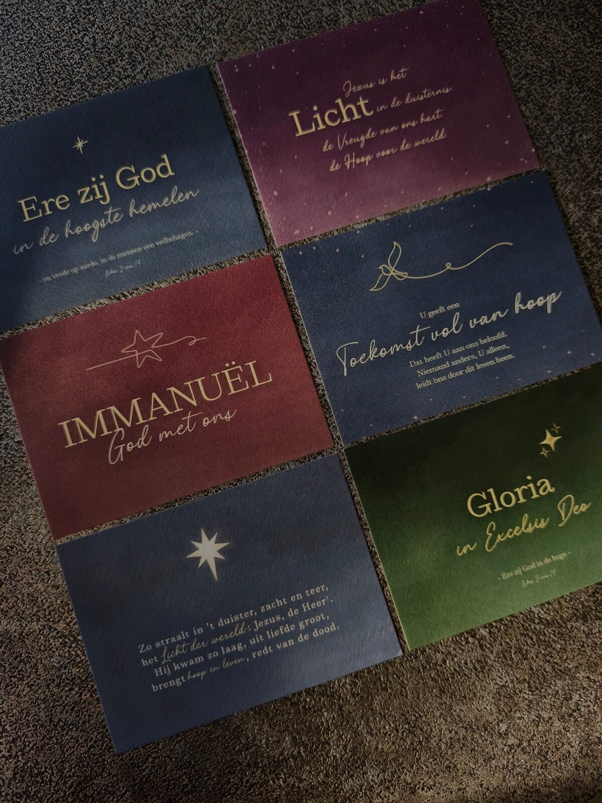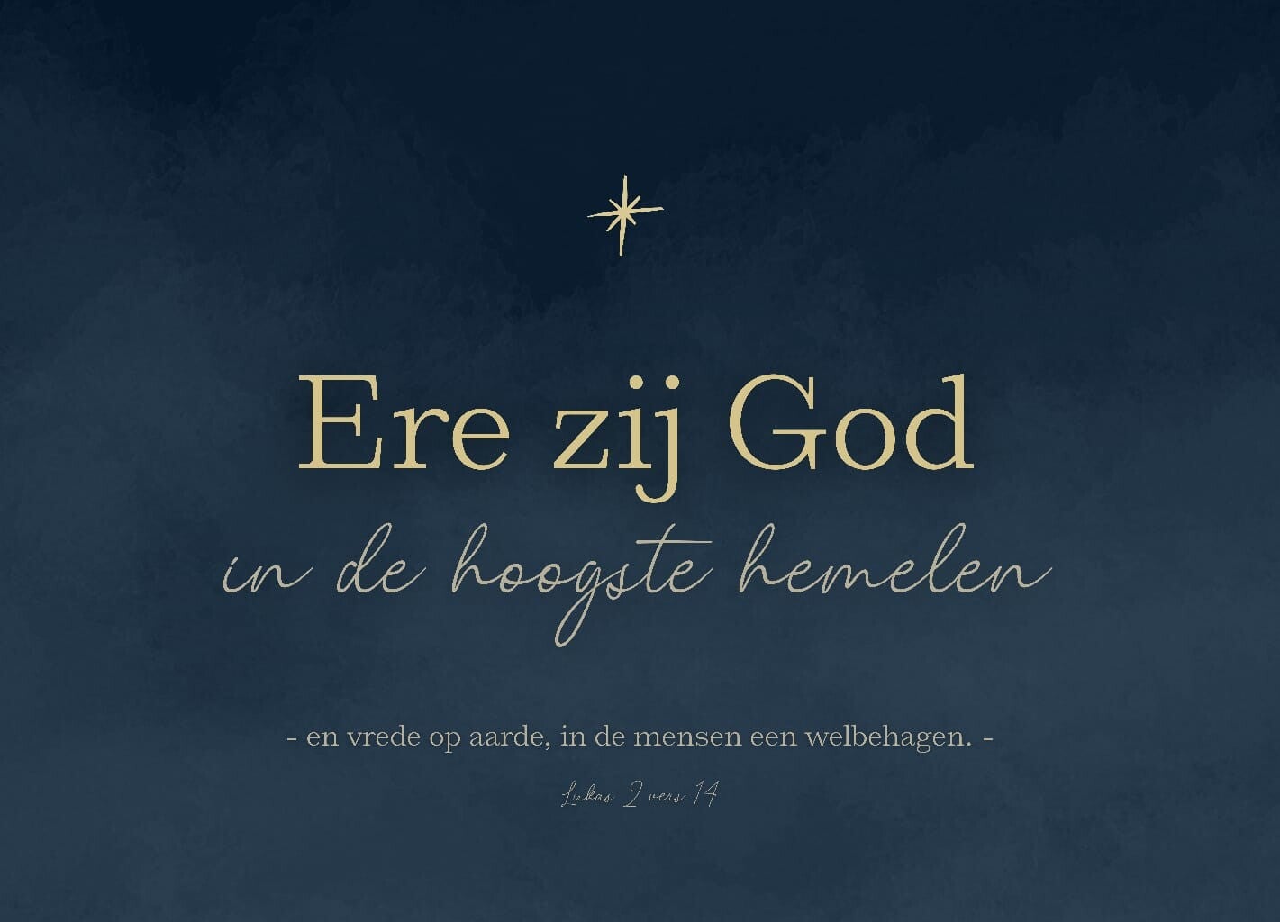 Kaart met de tekst: Ere zij God in de hoogste hemelenEn vrede op aarde, in de mensen een welbehagenLukas 2 vers 15 SV